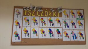 PSZCZÓŁKIWychowawca: pani Bogumiła WólczyńskaWspólnie z Rodzicami ozdabiamy pierniczki Spotkanie z Świętym Mikołajem Barbórka Planetarium Orbitrek Dzień Misia Spotkanie z Świętym Mikołajem Barbórka Planetarium Orbitek Dzień Misia Zdrowe kanapki Obchody Dnia Niepodległości Dzień Postaci z Bajki Pamiętamy o naszych zmarłych Wybrane prace z miesiąca października Jesienne zabawy w parku Wycieczka do Kopalni Królowa Luiza Dzień Przyjaciela Prace wykonane we wrześniu