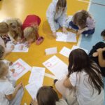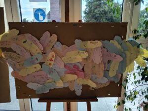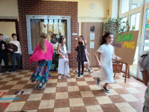 W klasach 1-3 uczniowie odgrywali scenki dramowe z różnymi sytuacjami społecznymi, ucząc się jak ważne są dobre relacje i wzajemny szacunek. Dodatkowo wykonali piórka dobrych słów, które ozdobiły „skrzydła” projektu „Słowa mają MOC”, przypominając, jak istotne jest, aby nasze słowa były pełne życzliwości i wsparcia.