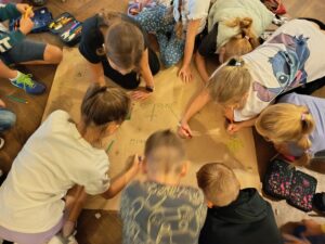 22 września, wspólnie stworzyliśmy plakaty o tematyce ekologicznej i sprzątaniu świata, pod hasłem „W naturę z kulturą”. To był dobry pretekst do przemycenia w młode umysły troski o nasze najbliższe otoczenie.