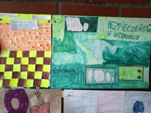 W klasach 7 uczniowie nakręcili filmy na temat uzależnień i bezpieczeństwa, co jest ważnym elementem edukacji społecznej. Plakat o wykluczeniu i bezpieczeństwie przygotowali uczniowie klasy 4, natomiast klasy 5-6 stworzyły ulotki poruszające podobną tematykę, promującą wzajemne zrozumienie i troskę.