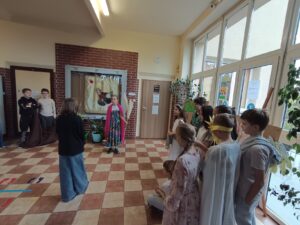 Piątoklasiści przedstawili inscenizację mitu o Demetrze i Korze dla młodszych uczniów