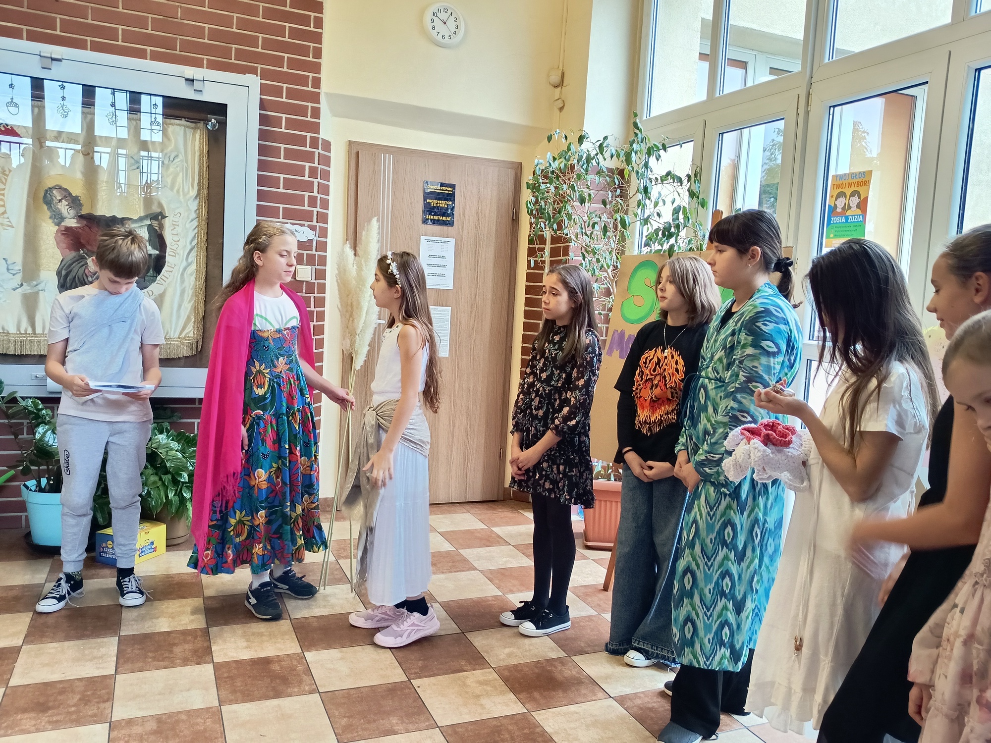 Piątoklasiści przedstawili inscenizację mitu o Demetrze i Korze dla młodszych uczniów